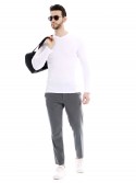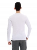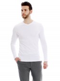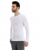 T-shirt manches longues col V Blanc 100% coton pour Homme